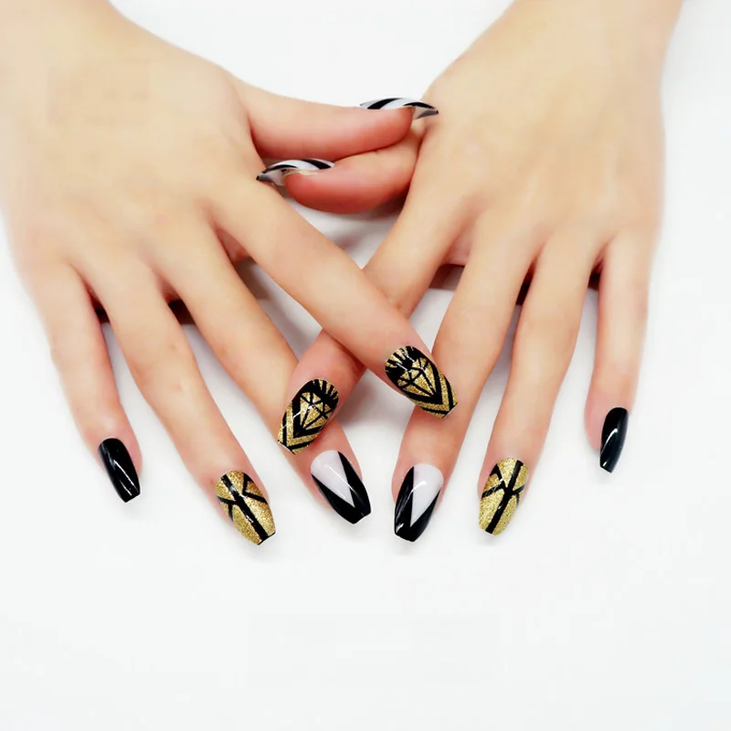 24pcs Black And Gold Glitter With Disordered Line Pattern Fake