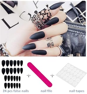 Amazon Com Jindin Black Matte Fake Nails Coffin Shape Acrylic